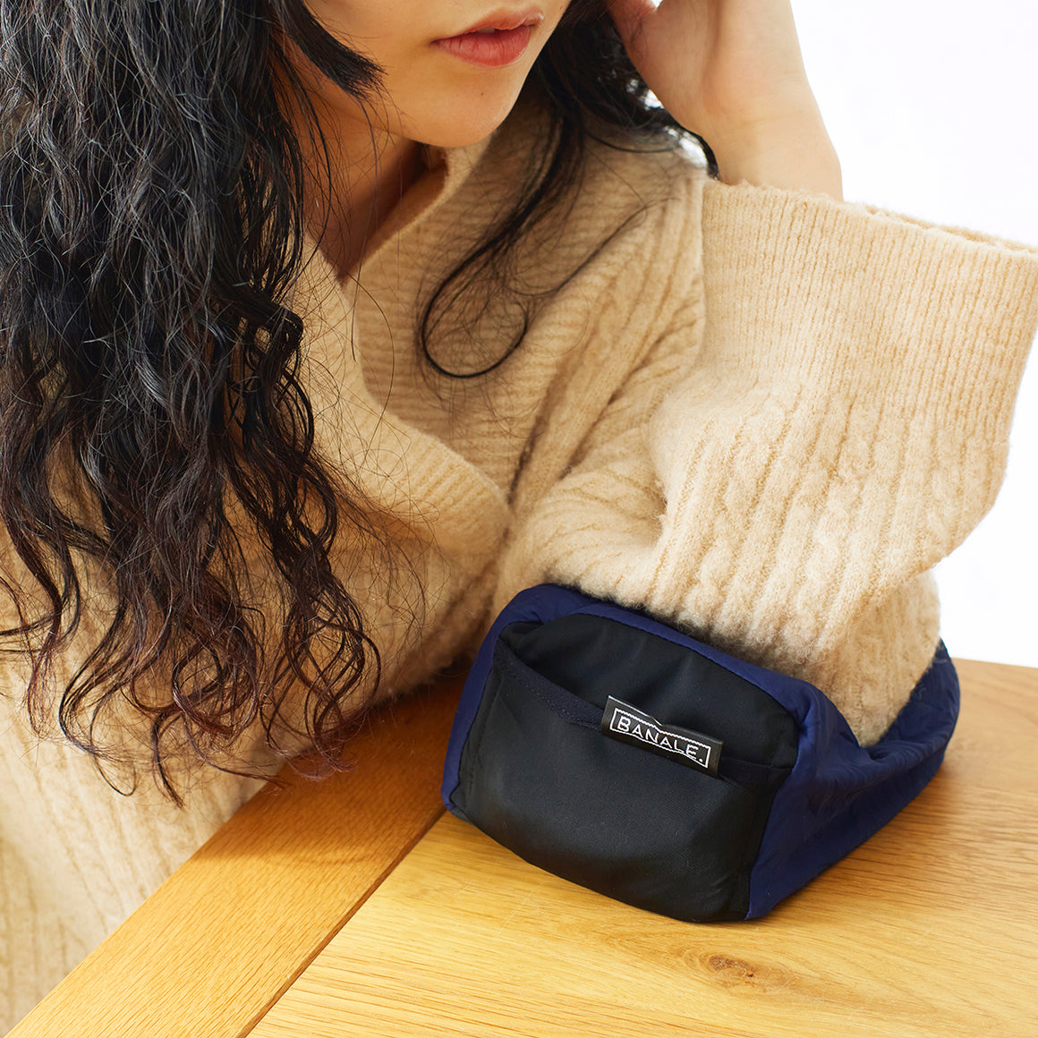 頭以外にも使える携帯型ミニピローです。ピローというと枕を思い浮かべがちですが、「ミニピロー」は、肘置きにも応用可能。オフィスでがっつり休息をとりたいときは枕に、PC作業をしながらコーヒータイムを挟みたいときは肘掛けに、と気分に合わせて使い分けることができます。