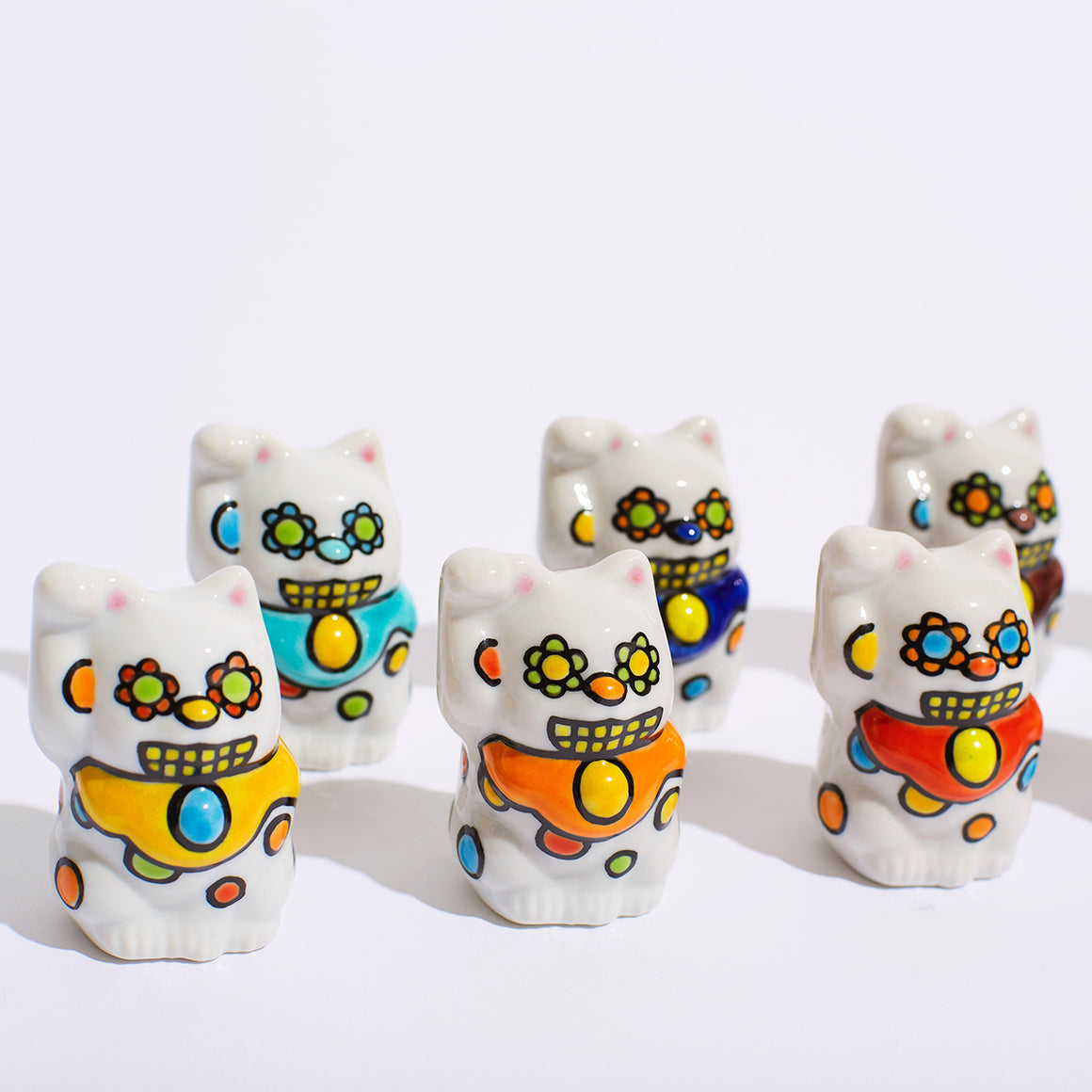 メキシコで「死者の日」に飾られる「シュガースカル」をモチーフにした九谷焼の招き猫です。一つ一つ職人が絵付けしているため、微妙に風合いが違って愛らしさ満点。どの色が届くかわからないので、開けるときの楽しみもあります。