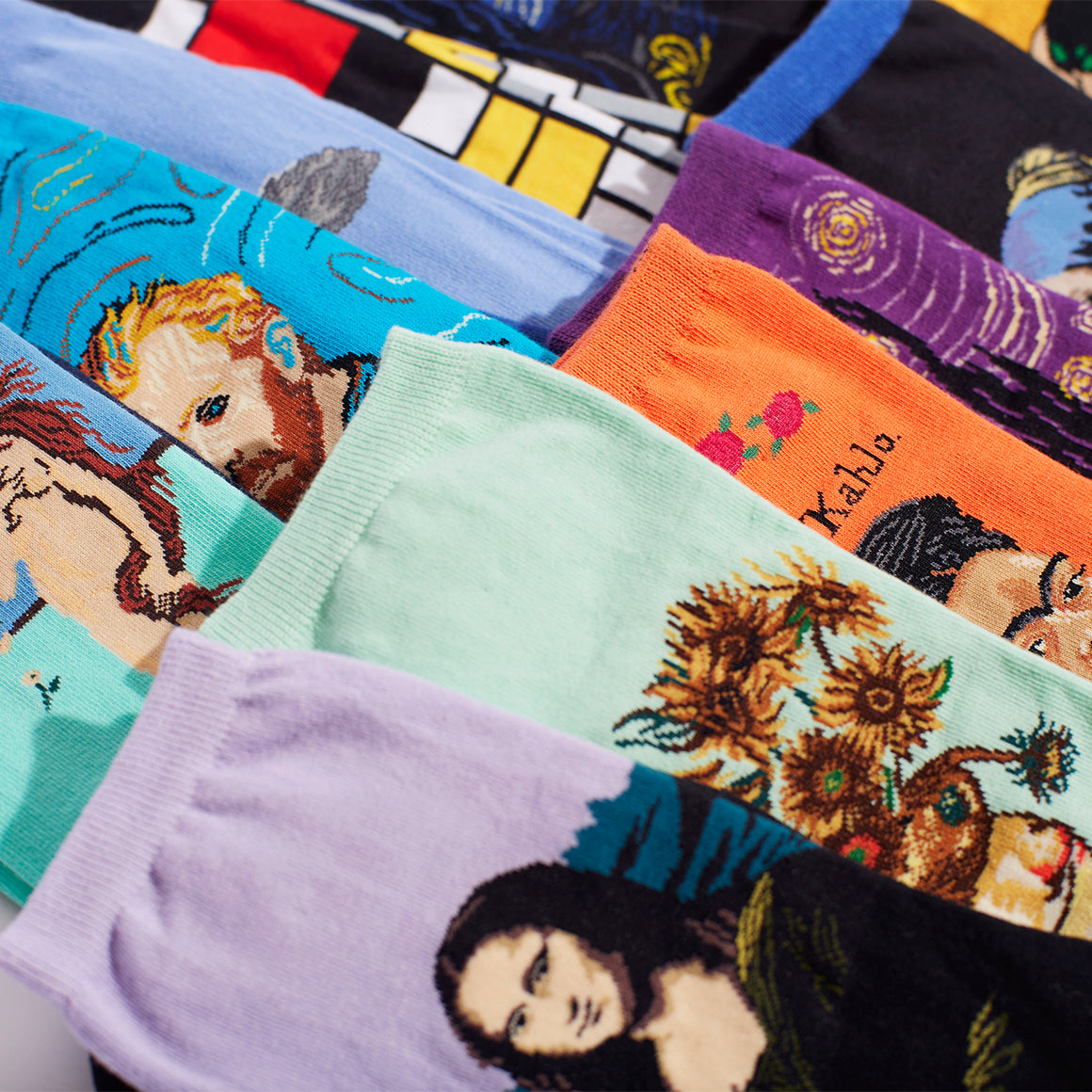 有名なアートが描かれた靴下です。ゴッホやモネ、シャガールなど、誰もが知る画家の名画が、鮮明に織り込まれています。