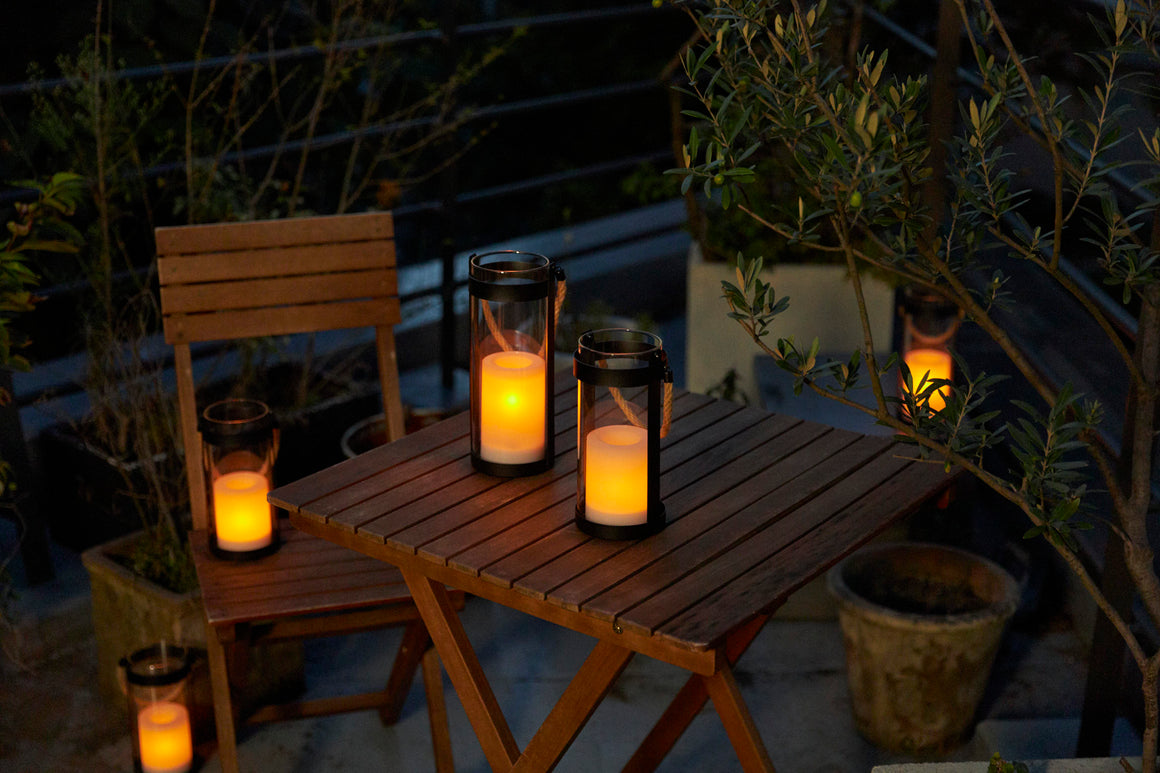 広い窓辺があるお部屋やリビング、ベランダ、玄関先などの雰囲気作りにおすすめな「LEDキャンドルランタン」。光の感知センサーが内蔵されていて、暗くなり始めると自動で点灯します。何気ない夕飯時や、夜の寝る前の時間をやさしい光でおしゃれに演出してくれます。