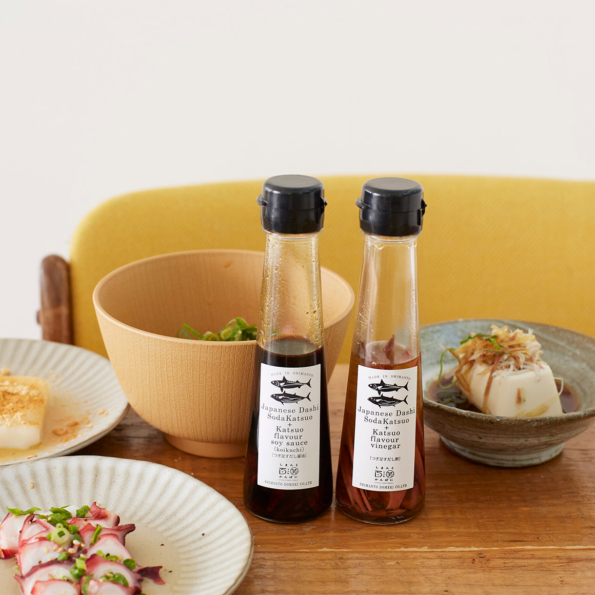 だし醤油、だし酢、砂糖を合わせれば大人味の三杯酢に。料理が好きな人ほどハマってしまう、上品で実用的な調味料のプレゼントです。