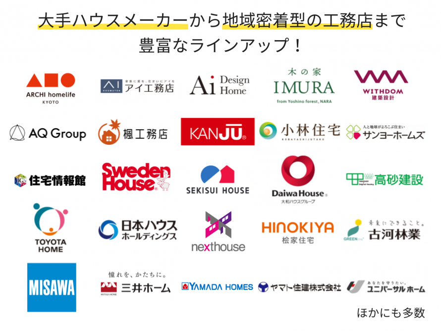 大手ハウスメーカーから地元工務店までさまざまなタイプの中から、あなたに本当におすすめできる会社を選定 します。