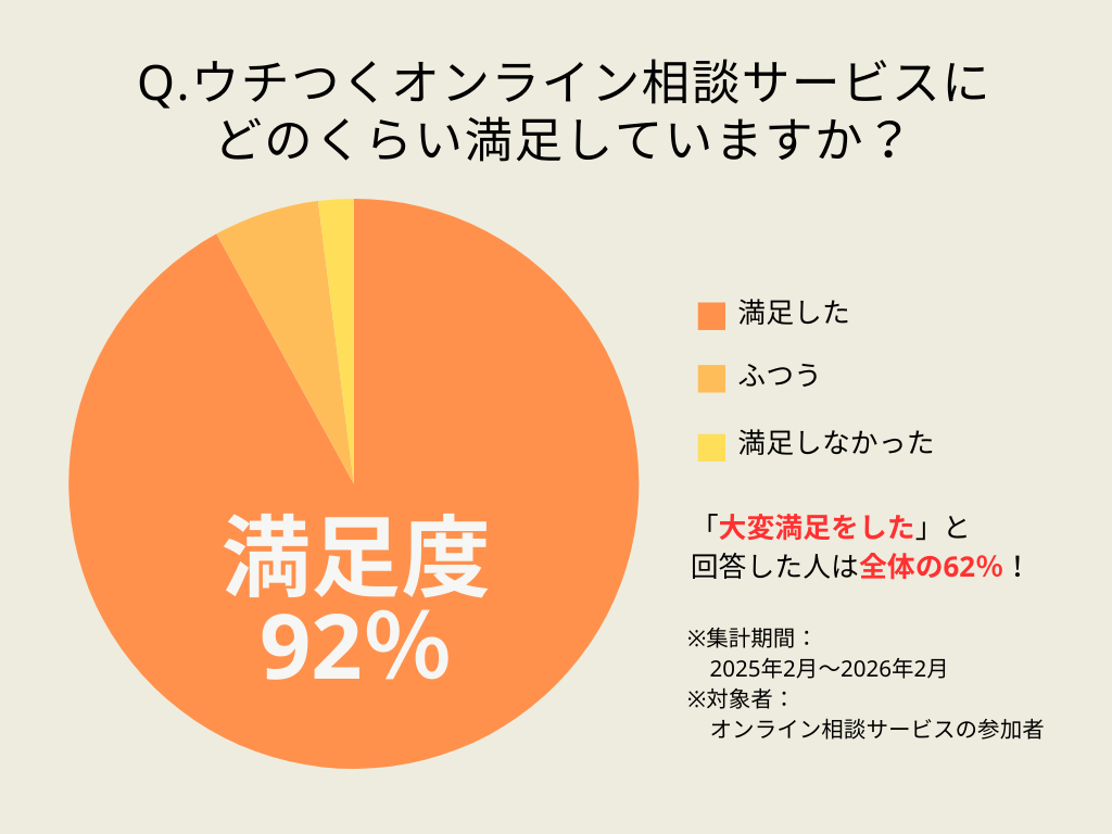 その結果「ウチつく」の相談サービスに参加した方の約92%のお客様にご満足いただいています。