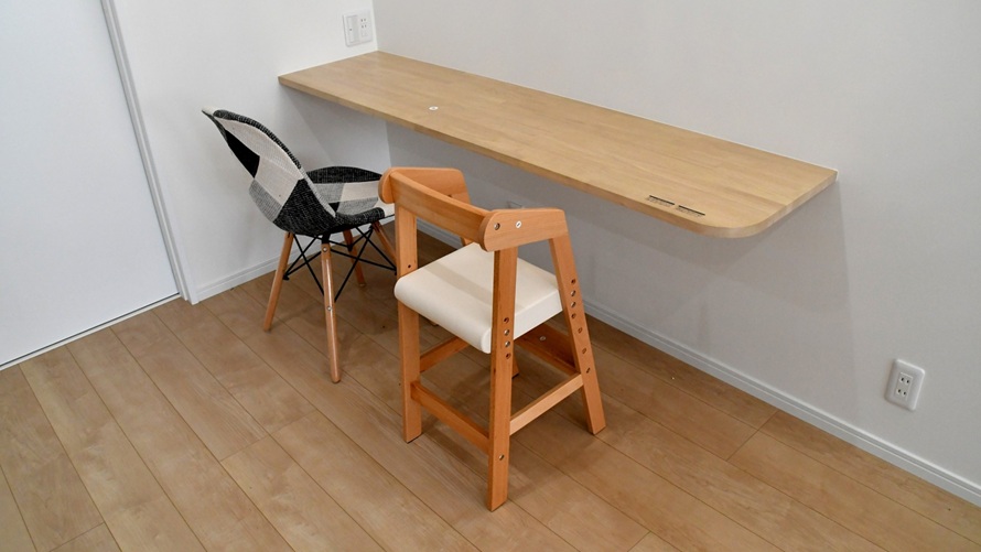 スペースを大きく取らずに設置でき、ちょっとした読書やパソコン作業にも使えるため、子どもだけではなく大人にとっても便利なワークスペースとなります。